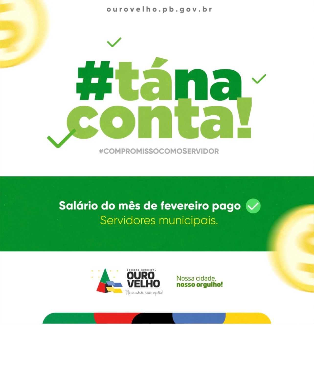 A Prefeitura de Ouro Velho anunciou nesta sexta-feira (18) a antecipação do pagamento dos servidores referente ao mês de fevereiro, (efetivos, contratados e comissionados).