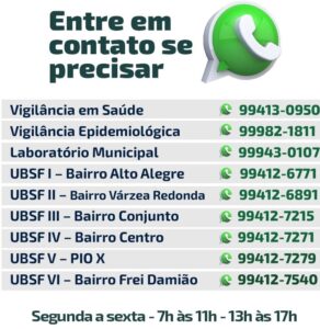 Em caso de dúvida, o usuários deve utilizar o whatsapp da Unidade Básica de Saúde do seu bairro.