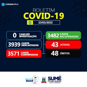 A Secretaria de Saúde de Sumé registrou 06 novos casos de coronavírus para esta quarta-feira (23/02).