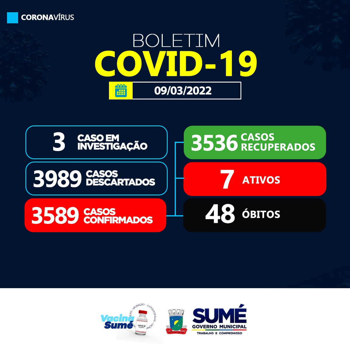 A Secretaria de Saúde de Sumé registrou 01 novo caso de coronavírus para esta quarta-feira, (09/03).