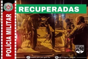 Durante as ações, com foco nos locais e horários com maior aglomeração de pessoas, a fim de dissuadir potenciais ações criminosas, a polícia militar se fez presente no município de Amparo, no Cariri, onde foram apreendidas e recuperadas duas motocicletas com restrição de roubo/furto.