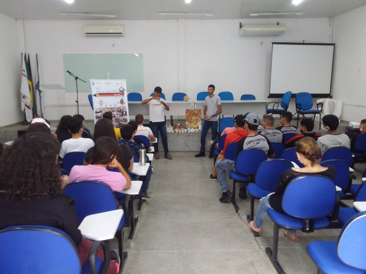 Como parte das atividades de comemoração à Semana do Meio Ambiente, monitores do Projeto Solo na Escola/UFCG do Centro de Desenvolvimento Sustentável do Semiárido da UFCG, alunos do curso de Agroecologia: Ilton Pereira e Rogerio Andrade e o Tecnólogo em Agroecologia Ivson Sousa, integrante do Grupo de Pesquisa Educação em Solos (CNPq), recepcionaram no Espaço Pedagógico de Educação em Solos (CDSA) os estudantes do 8° e 9° anos do Programa Educare da Escola Presidente Vargas, acompanhados pelos professores Alisson Clauber e Cleomaria Gonçalves.