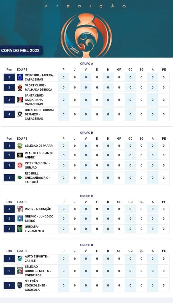 Confira como ficaram definidos os grupos da 7ª edição da Copa do Mel de Futebol: