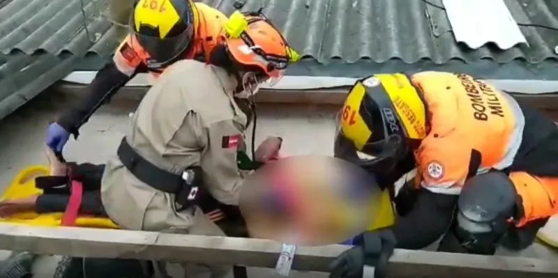 A vítima estava no telhado do estabelecimento localizado da Avenida Treze de Maio quando pisou no gesso que cedeu. Ele conseguiu se segurar na estrutura, mas sofreu uma forte pancada no tórax.