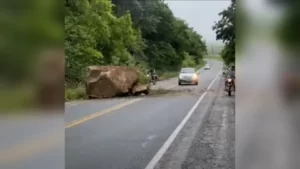 A rocha teria se despendido por conta das fortes chuvas na região. Não há informações sobre acidentes no local.