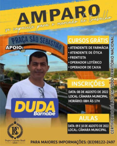 O vereador Presidente da Câmara de Amparo, Duda Barnabé divulgou em suas redes sociais, uma parceria junto ao Projeto Capacitar Brasil, que estará disponibilizando cursos gratuitos para a população amparense com certificado válido em todo o território nacional.