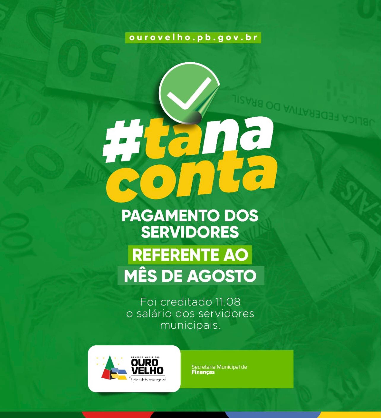 A Prefeitura de Ouro Velho anunciou nesta sexta-feira (12) a antecipação do pagamento dos servidores referente ao mês de agosto (efetivos, contratados e comissionados).