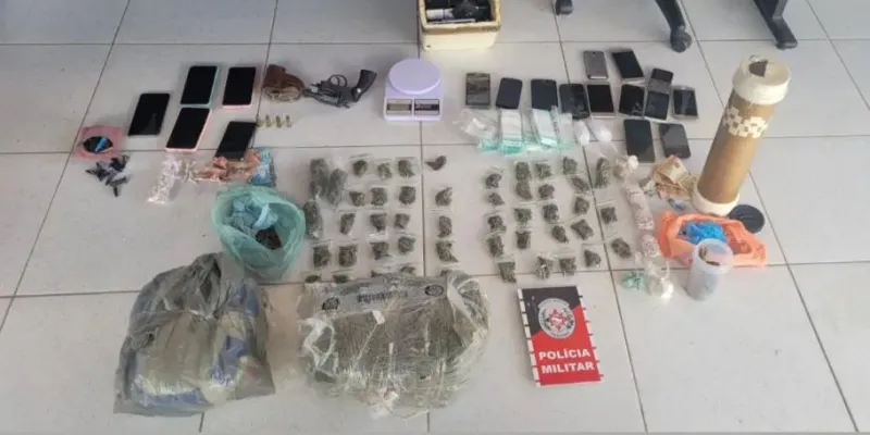 Além disso, também foram apreendidos uma balança digital, um revólver, 32 celulares, 2 tablets e R$ 500,00 em dinheiro.