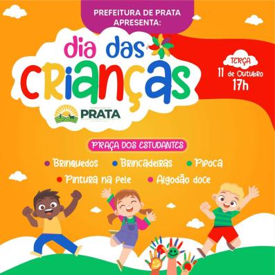 A Prefeitura Municipal de Prata realizará na terça-feira ( 11/10/2022 ) o Dia das Crianças que irá acontecer na Praça dos estudantes a partir das 17h.