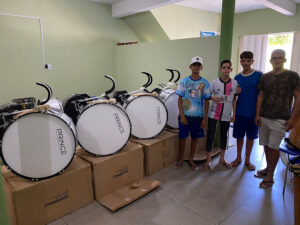Na última semana, o prefeito esteve entregando mais 4 instrumentos novos, tratam-se de 4 Bumbos de Marcha com Colete, que irão dar mais qualidade a banda.