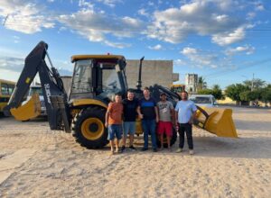 Após o anúncio da pavimentação das ruas, o prefeito Dr. Augusto, ainda realizou a entrega de mais uma retroescavadeira no município. De acordo com o gestor, o veículo trará mais agilidade aos serviços da Secretaria de Infraestrutura.