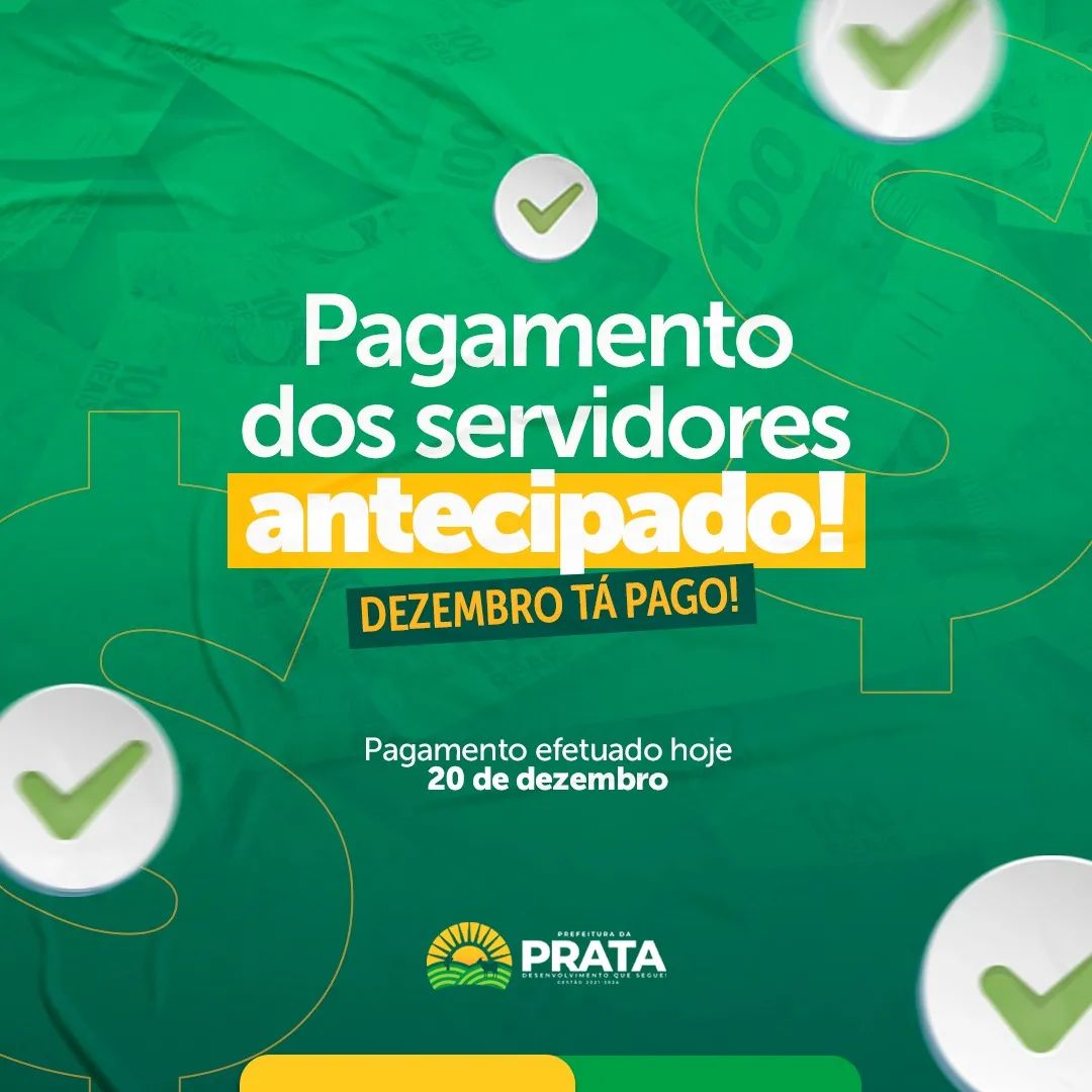 A Prefeitura de Prata antecipou o pagamento nesta terça-feira, dia 20, do pagamento do salário do mês de dezembro dos servidores.