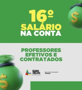A Prefeitura de Ouro Velho, na gestão do prefeito Dr. Augusto Valadares, anunciou na noite desta terça-feira (27), o pagamento do 16° salário aos professores efetivos e contratados do município.