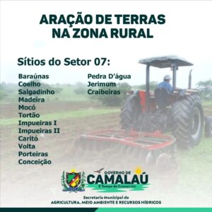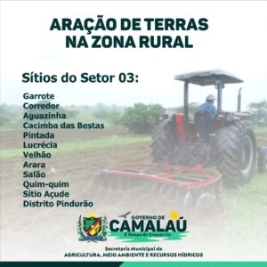 “Vamos cumprir à risca o cronograma estabelecido através do sorteio que realizamos, e quero reafirmar também que nenhuma comunidade rural de nosso município ficará sem sua aração de terra, todas serão contempladas, para que nossos agricultores possam ter uma boa colheita neste ano,” disse o gestor.