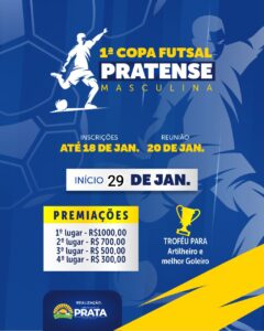 A prefeitura municipal de Prata e a secretaria de esportes, realizam a 1° Copa pratense de futsal masculino.