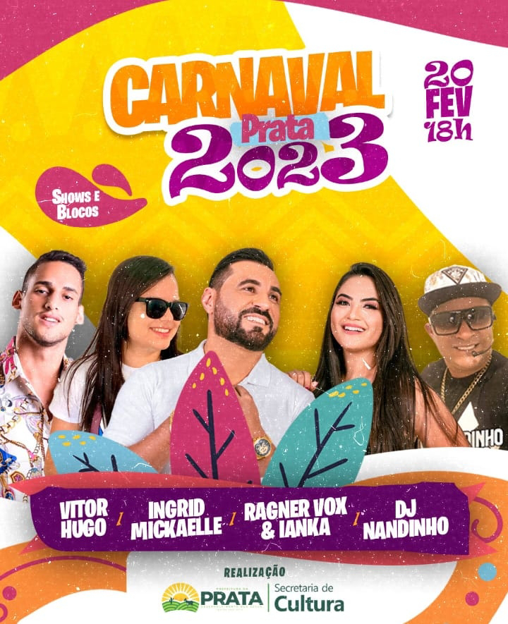 O prefeito de Prata, Genivaldo Tembório anunciou, nesta terça-feira (31), a programação oficial do Carnaval 2023 que será realizado no dia 20 de fevereiro com cinco atrações.