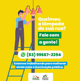 A Prefeitura de São José dos Cordeiros, por meio da Secretaria de Infraestrutura e Urbanismo, está disponibilizando o Disk-Lâmpada, um serviço permanente de manutenção e troca de iluminação pública, para manter as lâmpadas funcionando em todas as locais do município.