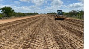 Atualmente, estão sendo realizados os serviços de: regularização de subleito; execução de camada de aterro; lançamento de material de sub-base e execução de bueiro simples de placa.