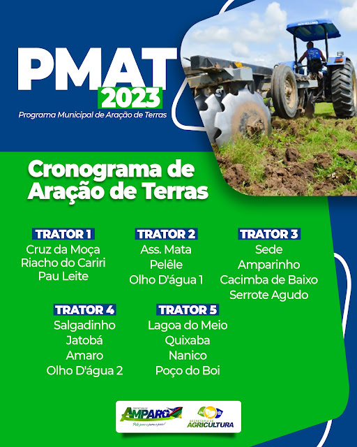De acordo com o secretário Paulo Henrique Soares, além dos tratores pertencentes à prefeitura municipal de Amparo, o prefeito Inácio Nóbrega, contratou outros tratores, para que em tempo hábil, atenda a demanda dos agricultores.