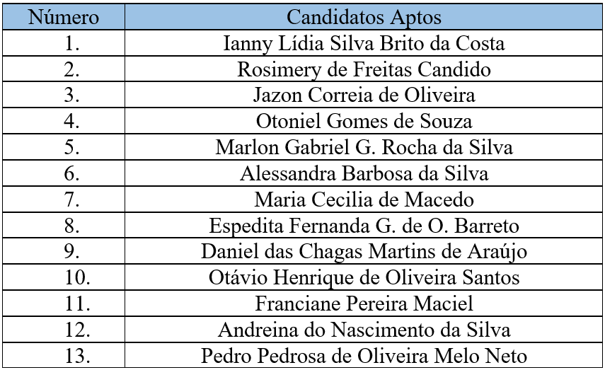 Confira o resultado dos candidatos aptos: