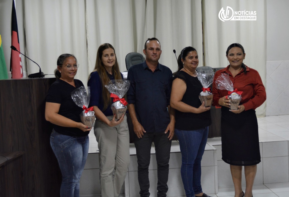 Após a sessão, o presidente da Câmara Municipal, Flávio Messias, entregou brindes às funcionárias e vereadoras em homenagem ao Dia das Mães, comemorado no último dia 14.