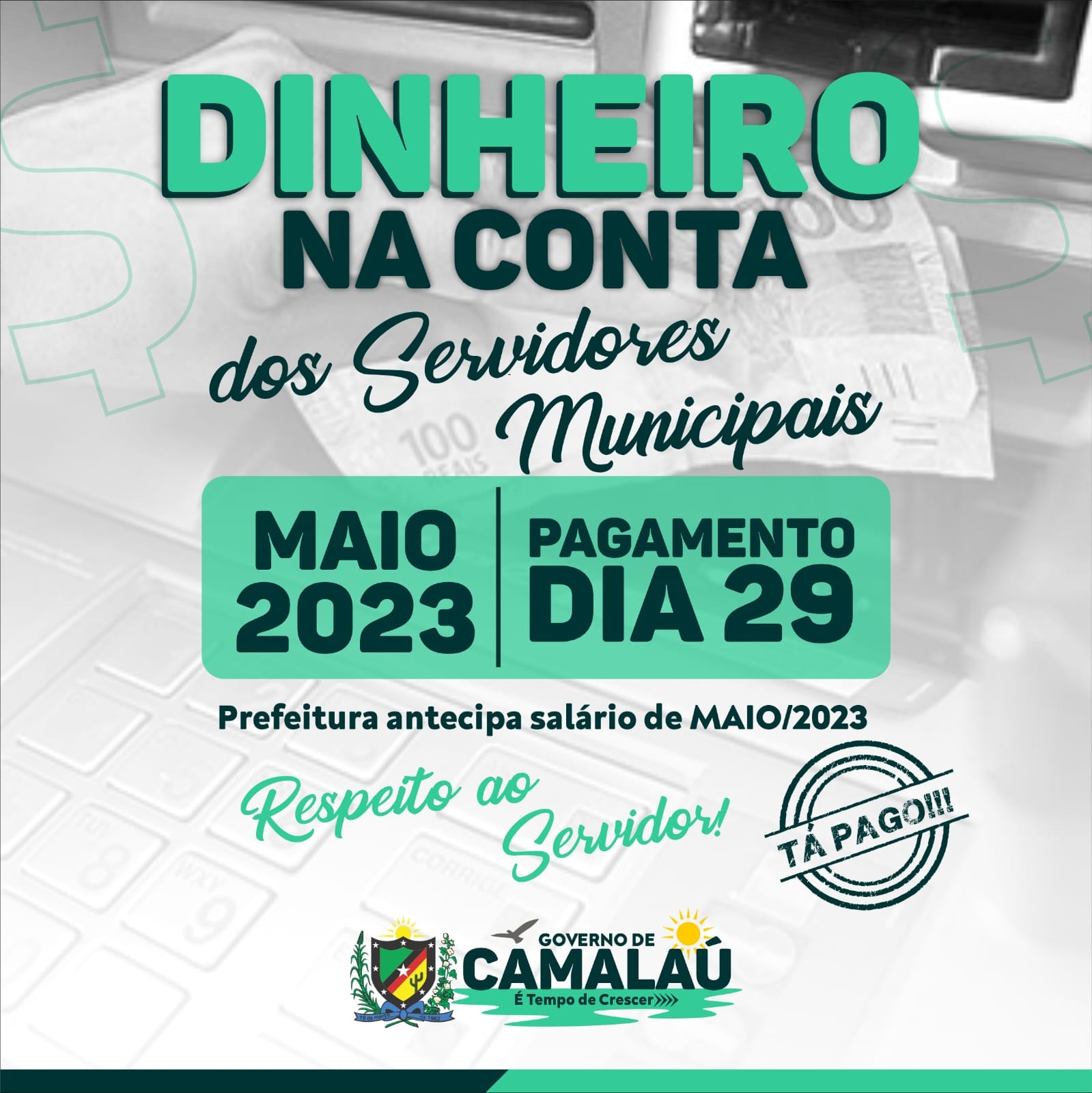 O prefeito Bira Mariano confirmou que a Prefeitura de Camalaú efetuou o pagamento dos servidores municipais referente ao mês de maio.
