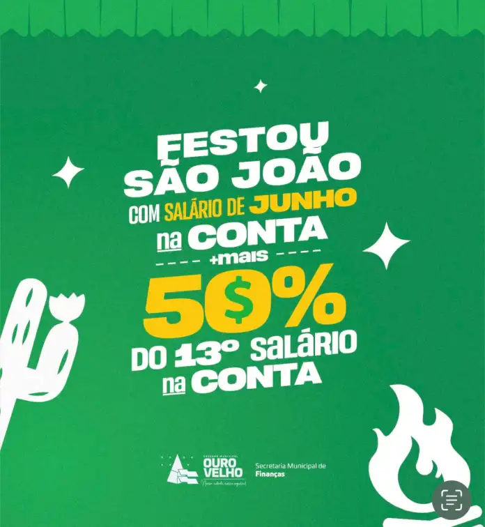 “Mês de junho antecipado e décimo só em Ouro Velho mesmo. E tem uma vantagem, o São João já foi pago 100%, fornecedores em dia, e temos mais de 20 obras sendo realizadas em nossa querida Ouro Velho. Avante com o trabalho”, disse.