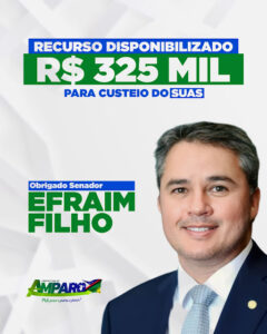 “Queremos agradecer ao nosso senador Efraim Filho por disponibilizar recurso de R$ 325 mil para custeio do SUAS. Recurso será muito bem utilizado em nossa cidade” postou o prefeito em suas redes sociais.