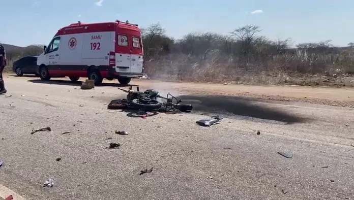 A vítima morreu no local e com o impacto do acidente, a moto pegou fogo.