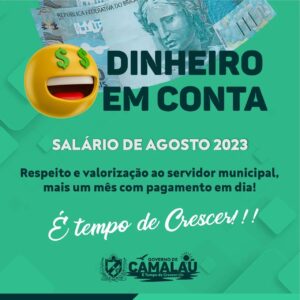 Em um cenário de grandes desafios financeiros que afetam a maioria dos municípios brasileiros, a Prefeitura de Camalaú reafirma seu compromisso com os servidores públicos, de realizar o pagamento antes do prazo estabelecido. Essa ação demonstra a prioridade da gestão em garantir o bem-estar dos funcionários públicos, que desempenham um papel fundamental na prestação de serviços essenciais à população.