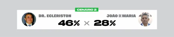 Quando o governista é Eclérinston Ramos contra João de Maria, o vice-prefeito tem 46% contra 28% de João de Maria. Na pesquisa de março eram 50% contra 30,5%. Ou seja, os dois oscilaram negativamente, mas dentro da margem de erro. Branco, nulo ou nenhum somam 12,5%. Não sabem e indecisos, 13,5%.