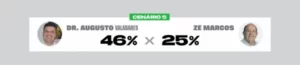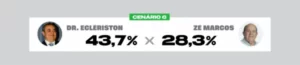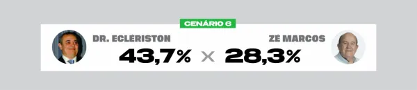 Quando a simulação é entre Zé Marcos e Eclérinston Ramos, o atual vice também lidera, com 43,7% contra 28,35 de Zé Marcos. Dizem votar branco, nulo ou nenhum 15,5%. Dizem estar indecisos ou não sabem 12,5%.