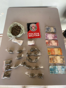 Ao perceber a presença da polícia, o indivíduo tentou fugir, porém foi capturado pelos policiais. Durante a abordagem e busca pessoal, foi encontrada uma quantidade de substância semelhante à maconha, juntamente com uma quantia em dinheiro. O suspeito informou aos policiais que havia mais drogas em sua residência.