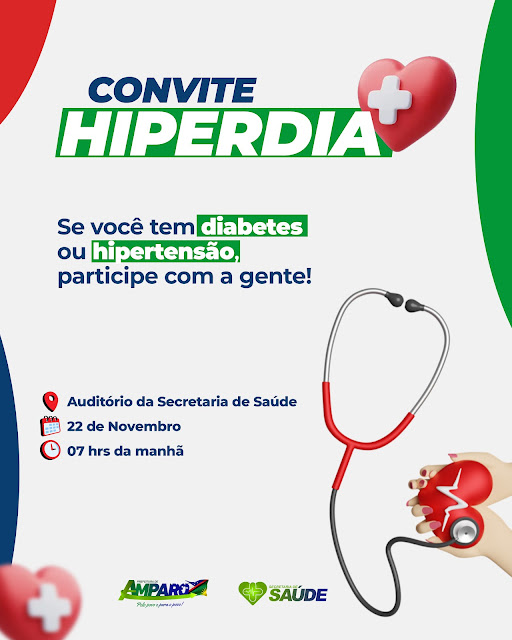 A Secretaria de Saúde de Amparo irá promover nessa quarta-feira (22) o Hiperdia, encontro para pessoas Hipertensas e Diabéticos.