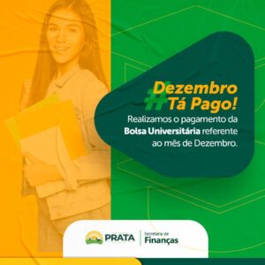 A Prefeitura de Prata através da Secretaria de Educação, pagou ajuda financeira aos estudantes, chamado Bolsa Universitária, referente o mês de dezembro .