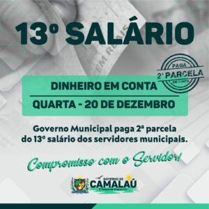 O prefeito de Camalaú, na gestão do prefeito Bira Mariano, realizou nesta quarta-feira (20), o pagamento da segunda parcela do 13° salário.