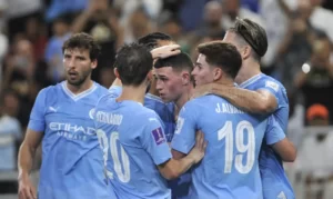 O Manchester City (Inglaterra) conquistou o título inédito no Mundial de Clubes da Fifa na tarde desta sexta-feira (22), ao aplicar 4 a 0 no Fluminense, no Estádio King Abdullah, em Jeddah (Arábia Saudita). O placar foi aberto com gol relâmpago aos 40 segundos – o mais rápido da história da competição – marcado pelo argentino Julián Álvarez, que também selou a goleada. O segundo gol foi contra, do zagueiro Nino e Folden fez o terceiro.