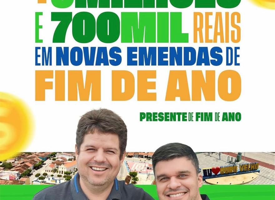 O último dia do ano de 2023 trouxe importantes notícias para o município de Ouro Velho. O prefeito Dr. Augusto Valadares, por meio de suas redes sociais, anunciou a conquista de mais de R$ 5,7 milhões em “novas emendas” parlamentares e convênios. O montante será destinado a investimentos que beneficiarão diretamente a população, contribuindo para o desenvolvimento e melhoria da qualidade de vida no município.
