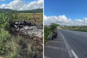 O acidente aconteceu no km 42 da BR-101, no sentido Natal/João Pessoa. O condutor teria perdido o controle dos veículos, que desceram a ribanceira, e capotaram numa região de mata. Ele estava transportando uma carga de cimento.