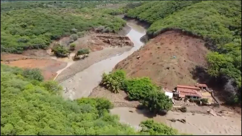 Os registros, feitos por um morador da localidade, identificado como Diogo Mangueira, na manhã desta quinta-feira (11), expõem o local onde a estrutura rompeu e houve o vazamento de água que desceu para as comunidades ribeirinhas.