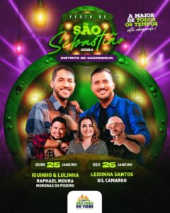 A gestão do prefeito Márcio Leite em São João do Tigre realizará a maior festa já vista por um distrito na região do Cariri paraibano. O distrito de Cacimbinha, na tradicional Festa de São Sebastião contará com a presença de grandes atrações em sua programação social, durante os dias 25 e 26 de janeiro .