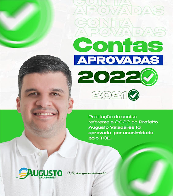 Com uma gestão pautada na integridade e na valorização do dinheiro público, o prefeito Augusto preza por uma aplicabilidade positiva e coerente das finanças do município, Augusto Valadares sempre sinalizou a importância das contas do município serem aprovadas, já que isso representa o valor moral e ético da gestão municipal.