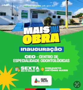 O prefeito de Ouro Velho, Dr. Augusto Valadares, anunciou para esta sexta-feira (03/05), a inauguração da nova sede do Centro de Especialidades Odontológicas (CEO) da cidade.