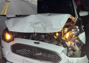 De acordo com relatos de um desportista que estavam em um carro, ninguém se feriu e foi apenas danos materiais.