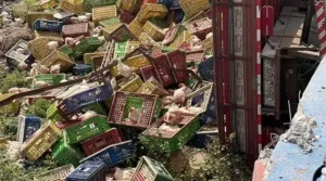 O acidente ocorreu por volta das 8h, quando o caminhão, que transportava uma carga pesada de aves, perdeu o controle ao tentar fazer uma curva na ponte. O veículo colidiu violentamente contra a lateral da estrutura e acabou tombando, resultando na queda parcial de sua carga e danos significativos ao próprio caminhão.