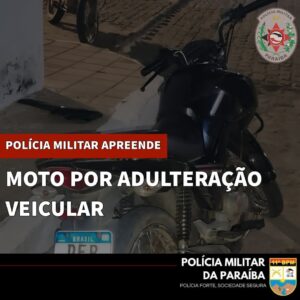 A motocicleta, que estava estacionada, chamou a atenção dos policiais devido ao seu estado de abandono, com poeira acumulada e farol danificado. Após uma inspeção minuciosa, os militares constataram adulterações nos sinais identificadores, como o número do motor, o chassi e o QR code da placa, que não constava no sistema.