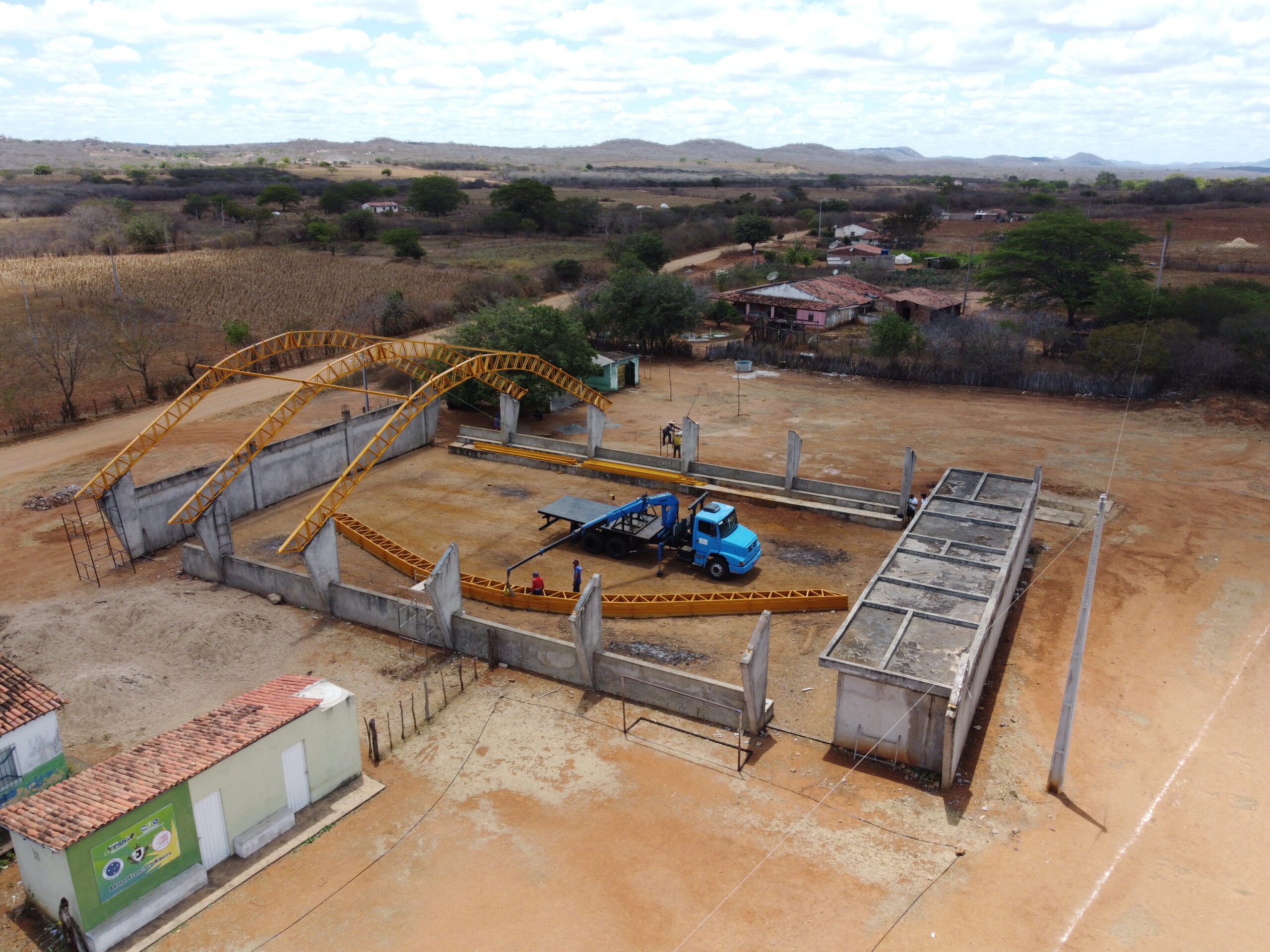 Obra parada por irregularidades do convênio deixado da outra gestão e que o prefeito não me deu esforços para regularizar todas as pendências das diligências feitas pelo FNDE, inclusive regularização de titularidade do espaço onde a quadra estava sendo construída.