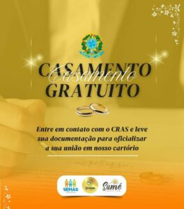 Graças a uma parceria entre a Secretaria de Assistência Social e o Cartório de Registro Civil de Sumé, estão sendo ofertadas vagas para casamento comunitário.