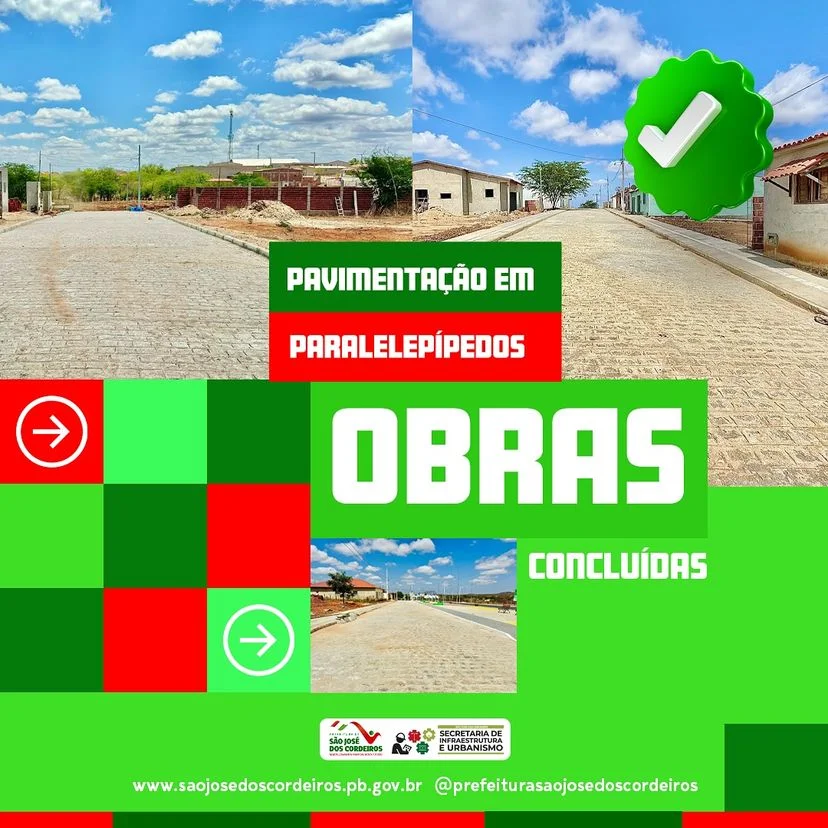 A Prefeitura de São José dos Cordeiros concluiu mais uma importante etapa em seu projeto de infraestrutura urbana com a pavimentação em paralelepípedos de quatro ruas do município. As ruas Extensão Severina Aires Gouveia, Nathan Wilk, Lucas Almeida e o Conjunto Habitacional foram beneficiadas, trazendo melhorias significativas para a mobilidade e o bem-estar da população.