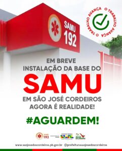 A gestão do prefeito Felício Queiroz anunciou mais uma grande conquista para São José dos Cordeiros, a instalação da base do SAMU.